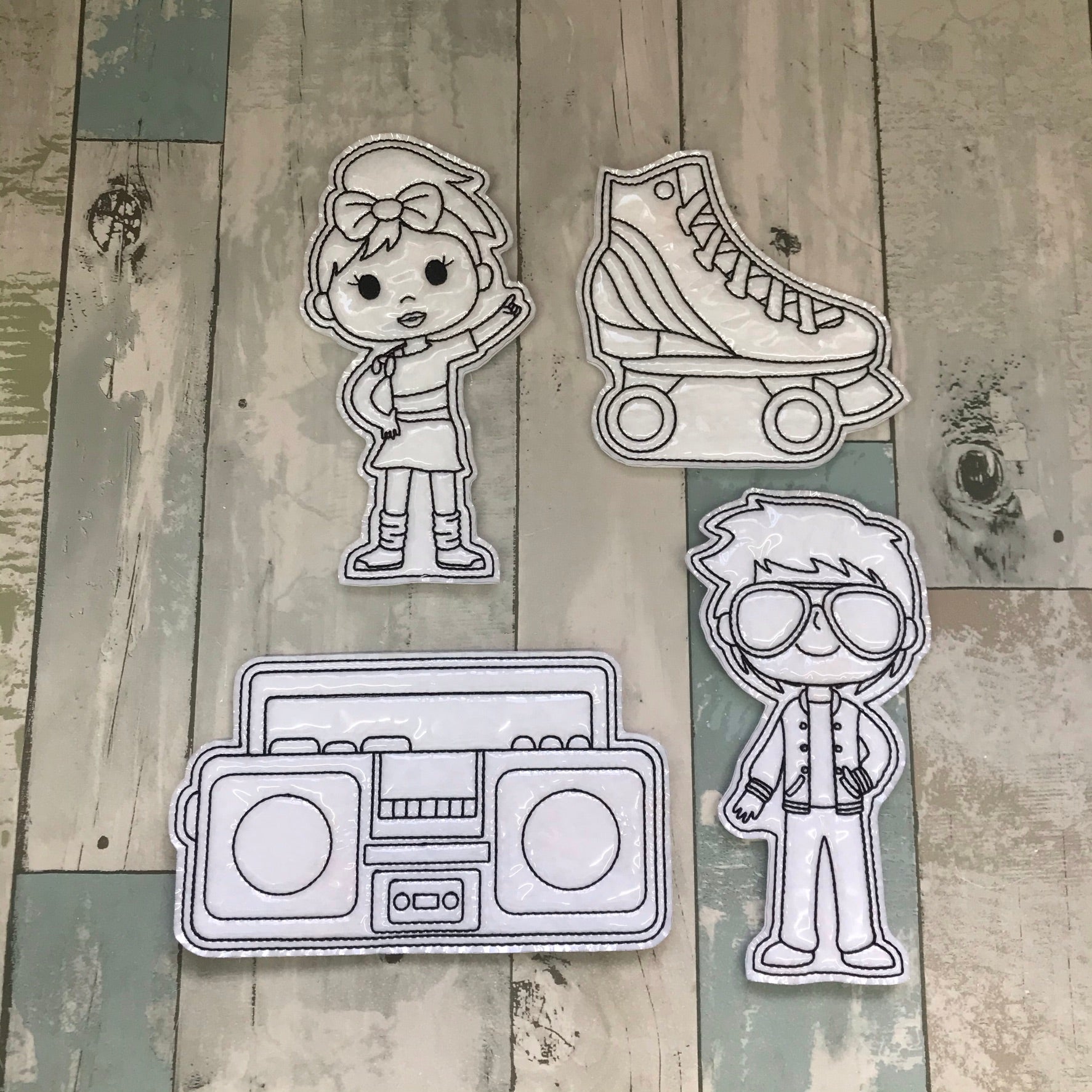 Re-usable colouring dolls.
