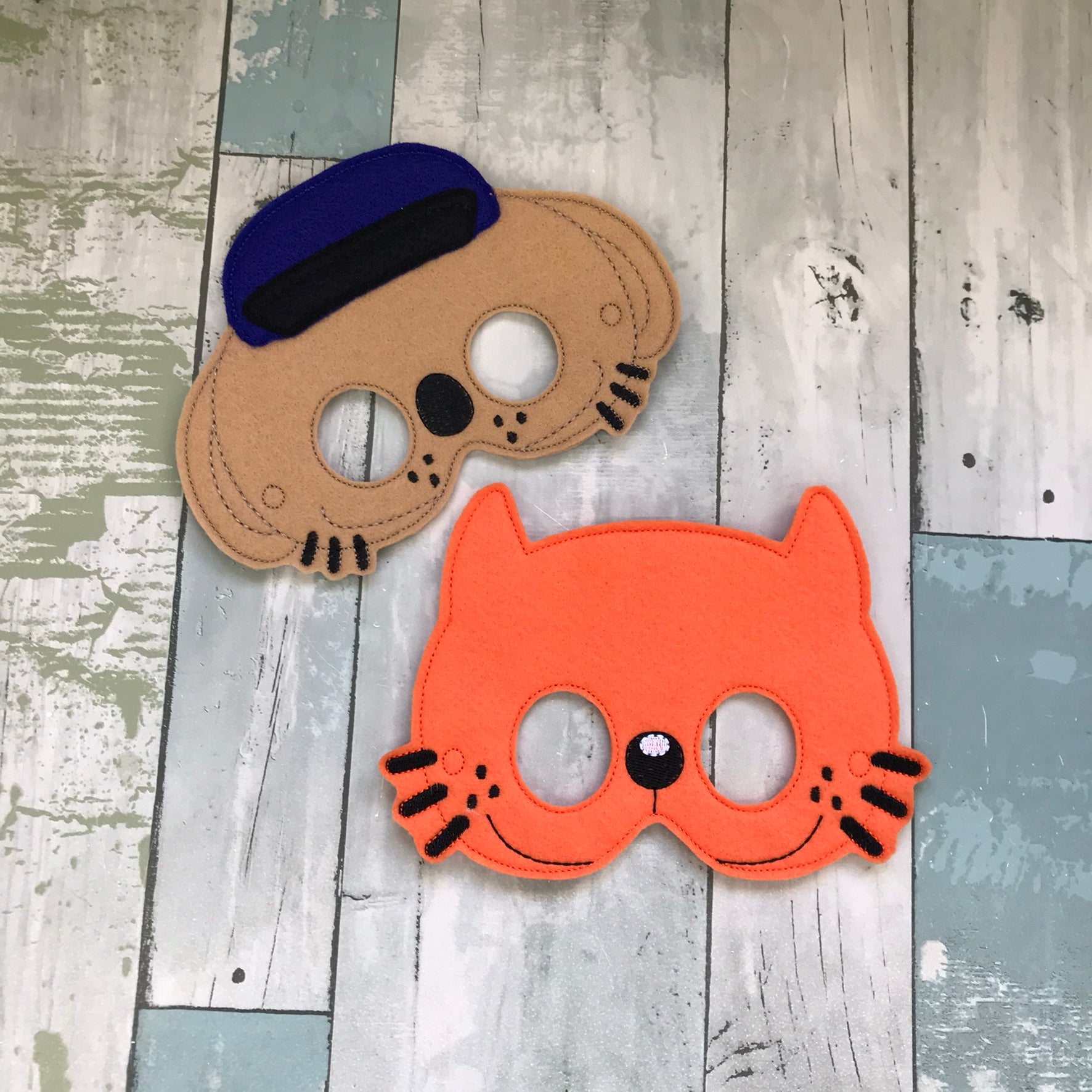 A cheerful set of handmade felt masks featuring a playful dog and a friendly cat. Soft felt, comfy elastic and bright character details make them perfect for kids who love animal adventures, dress up fun and imaginative play.