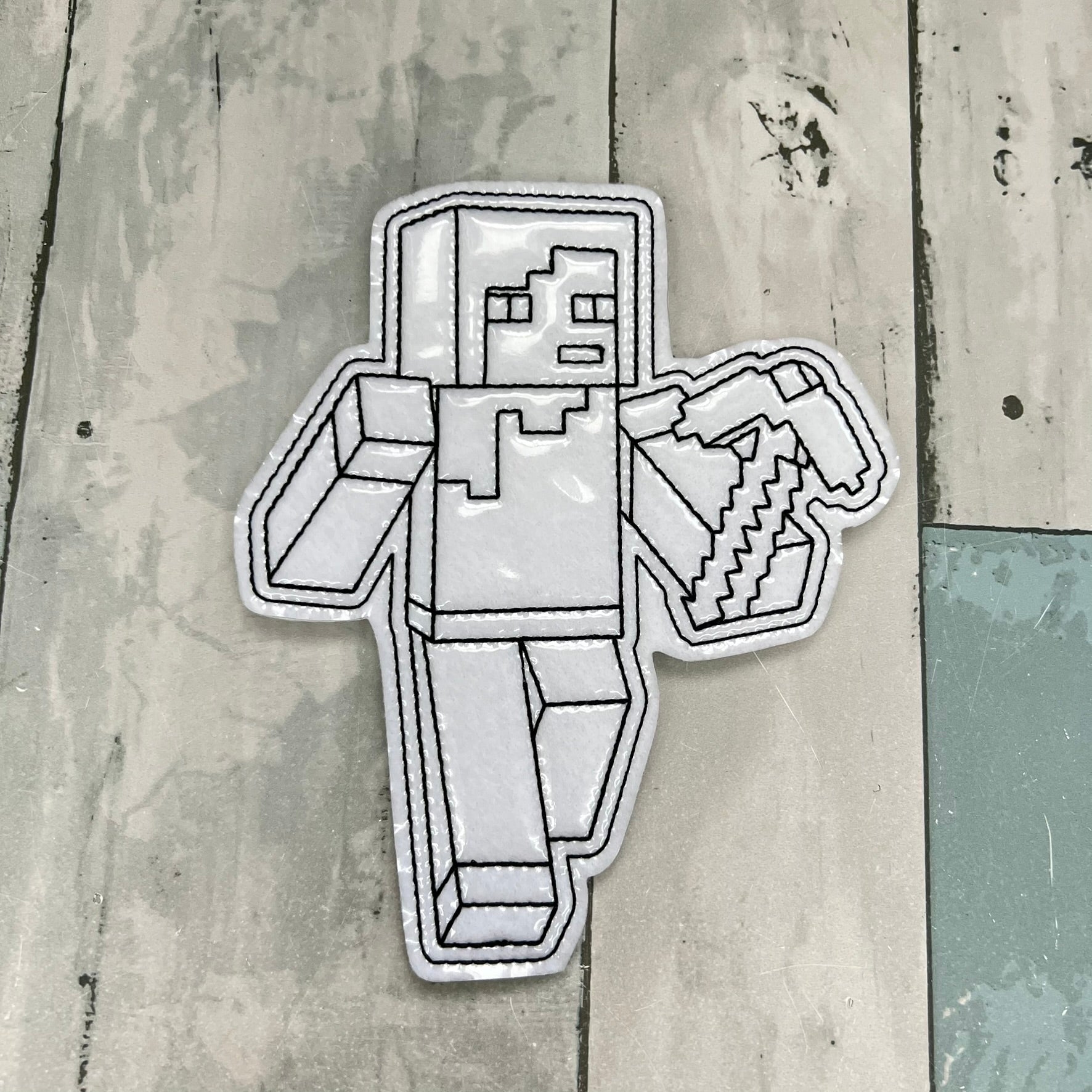 A handmade felt colouring doll with a wipeable vinyl surface for endless creative play. Kids can colour, erase and redesign their blocky adventure hero again and again.