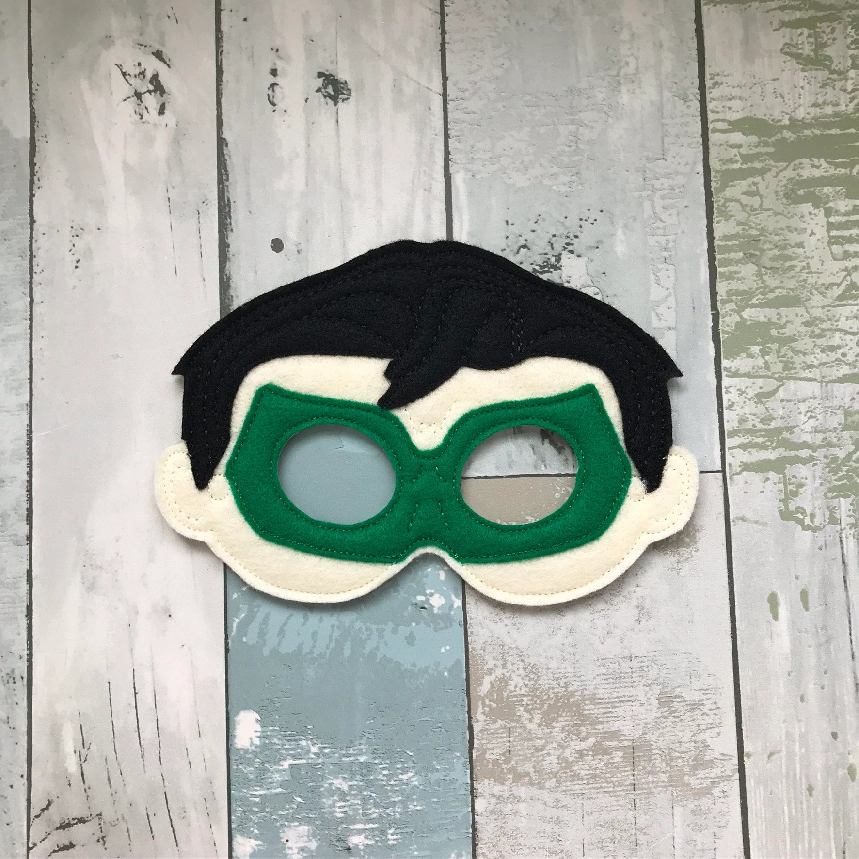 This handmade felt mask captures the bold, heroic look of a green‑themed space guardian with its bright color, strong lines and confident expression. Kids love how it instantly makes them feel powerful, brave and ready for imaginative adventures filled with teamwork and action.