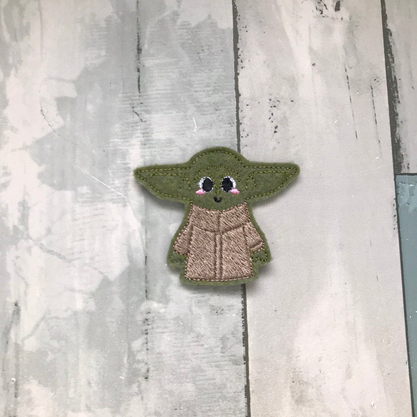 A handmade felt hair clip featuring a tiny green space baby with big curious charm. Soft, lightweight and easy to wear on either side for a sweet touch of cosmic fun.