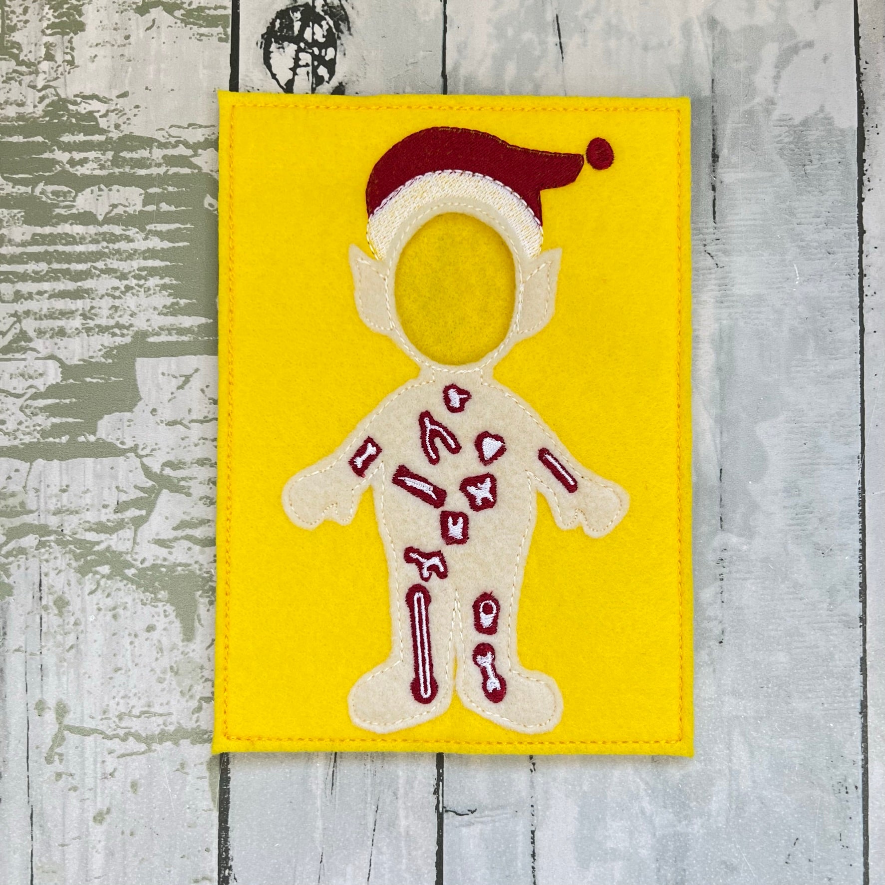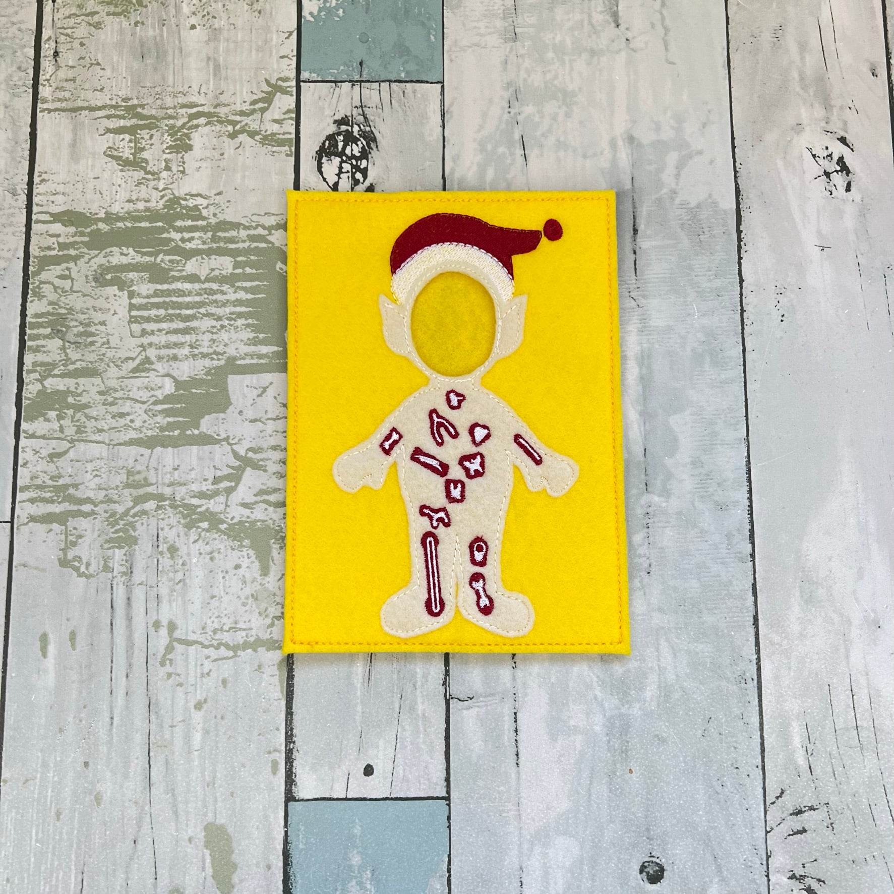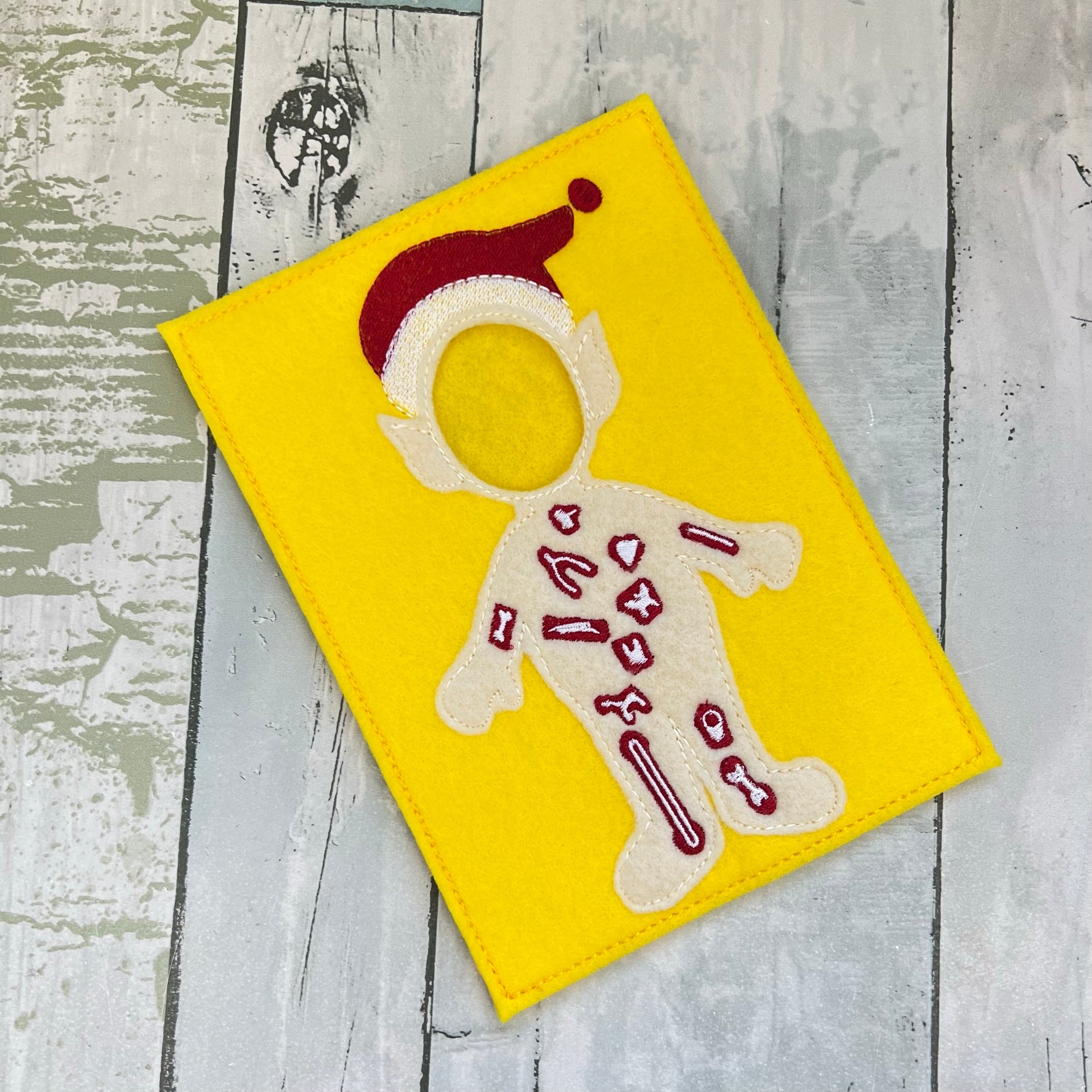 A soft felt patient costume inspired by a classic board game, sized for a small holiday elf friend. Bright details and a simple face opening make it perfect for doctor themed scenes and fun seasonal play.