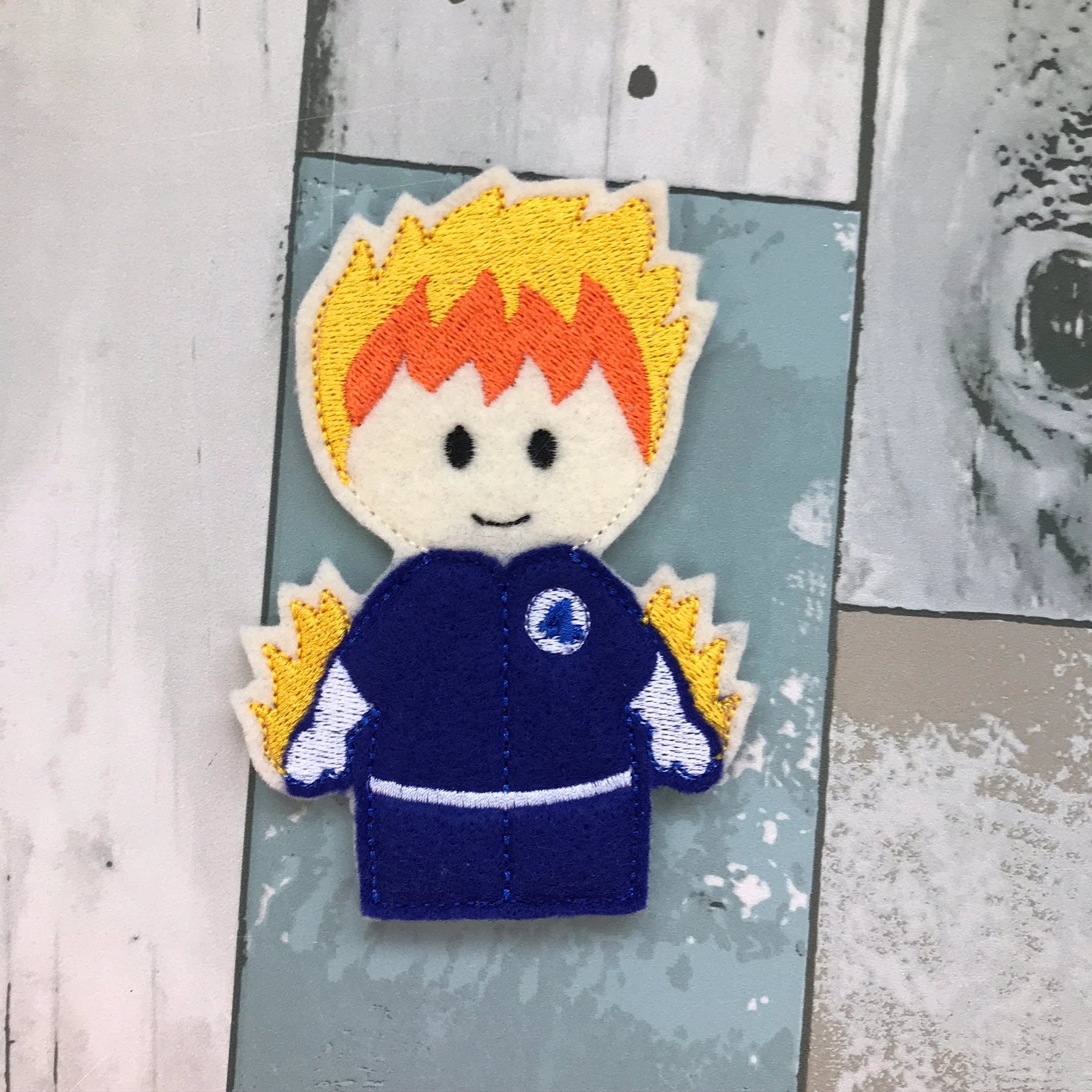 This cozy set of finger puppets features four heroes with designs that nod to a classic superpowered team. Kids will spot the fiery figure with bright orange touches, the calm character with soft blue tones, the stretchy scientist with clever details and the rocky strong one with warm textured shapes. Each puppet is made from soft felt that feels gentle and inviting.