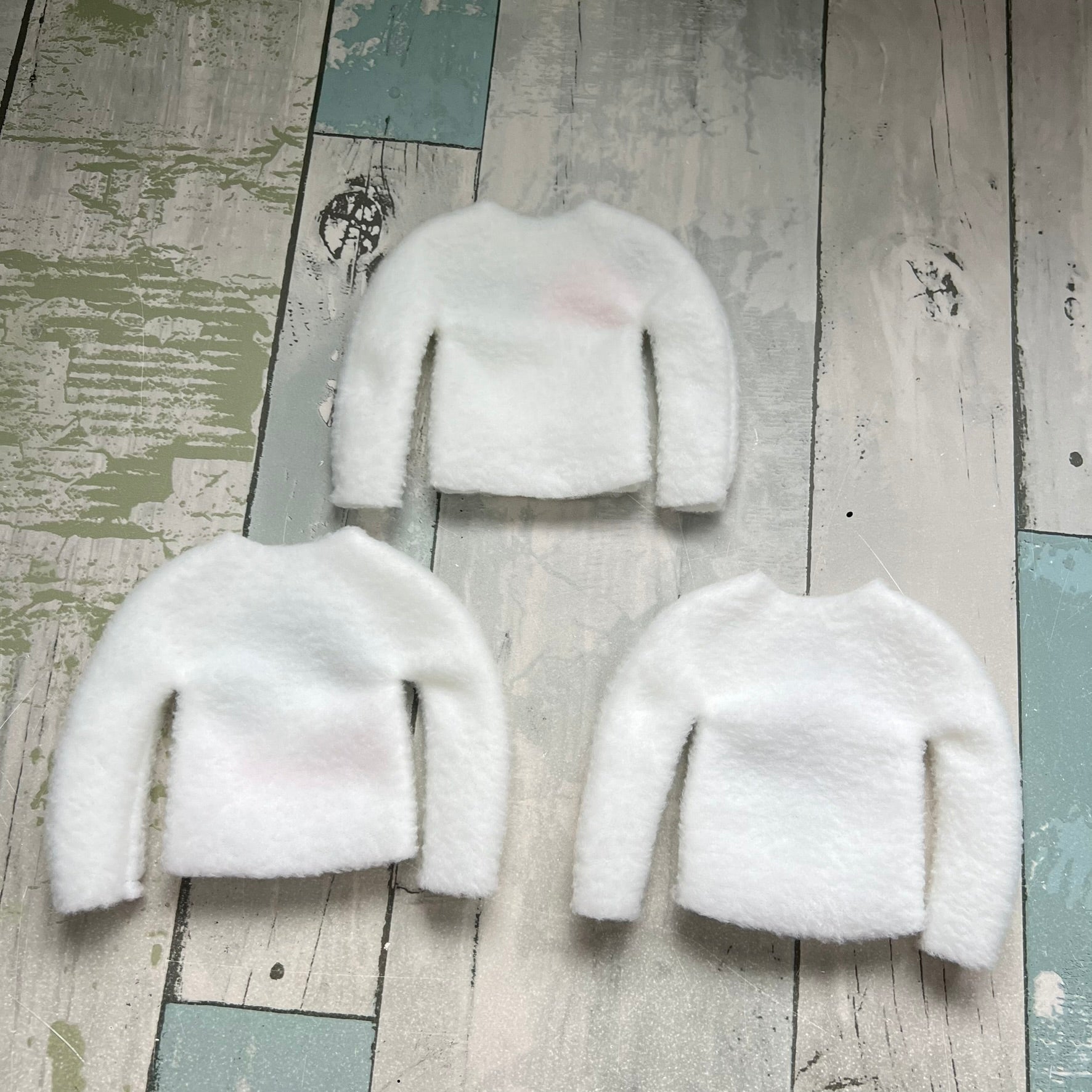Sweater are made with fleece! (The fleece stretch will make it easier to dress your elf!)